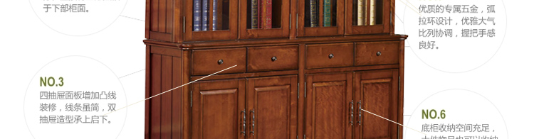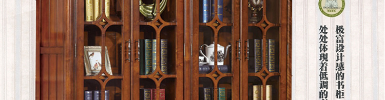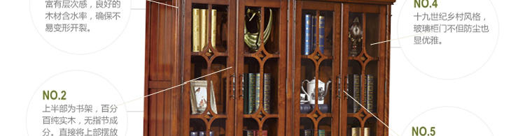 艾德森高档纯书柜 美式四门书柜装饰柜书房经典必备672B书柜