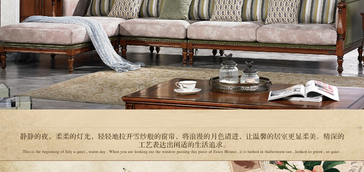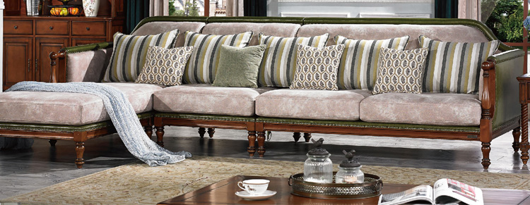 艾德森美式转角布艺沙发 高档客厅乡村布艺沙发美式田园沙发625A