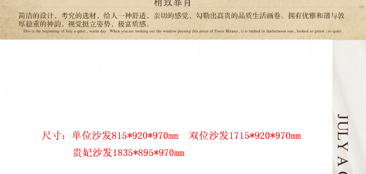 外围尺寸:单位沙发:815*920*970mm; 三位沙发:1715*920*970mm; 妃位沙发:1835*895*970mm