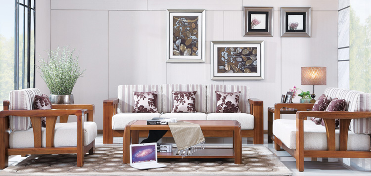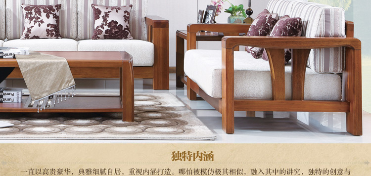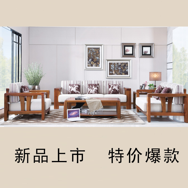 尚信实木沙发组合优质胡桃木 高档 原汁原味 家具客厅小户型中式布艺 型号:T-2201