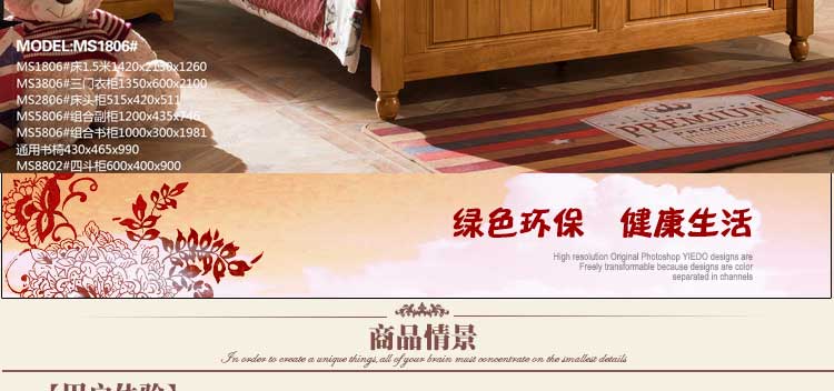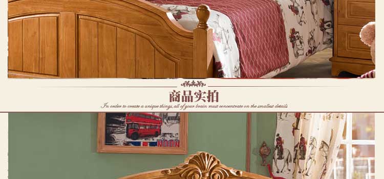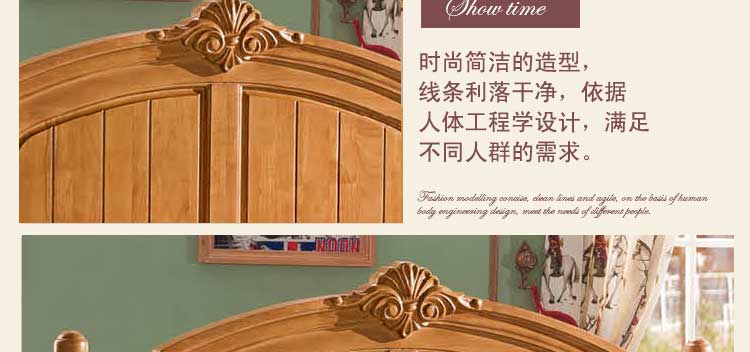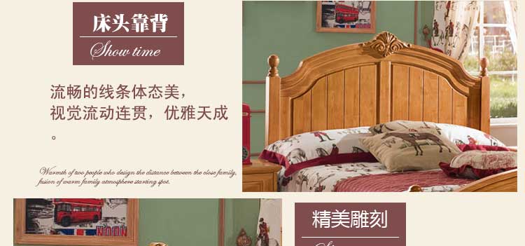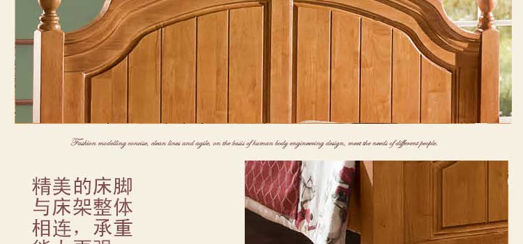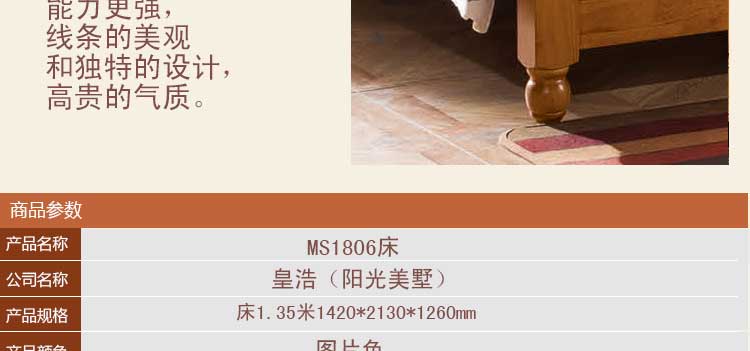 美式纯全实木床 1.35乡村复古床皇浩家具阳光美墅MS1806