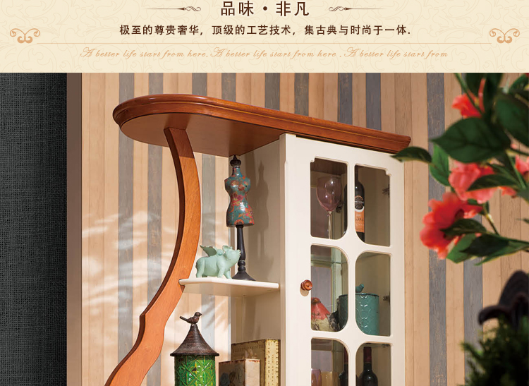 皇浩家具简美乡村客厅玄关隔断柜组合储物柜 玻璃酒柜T9022#间厅柜