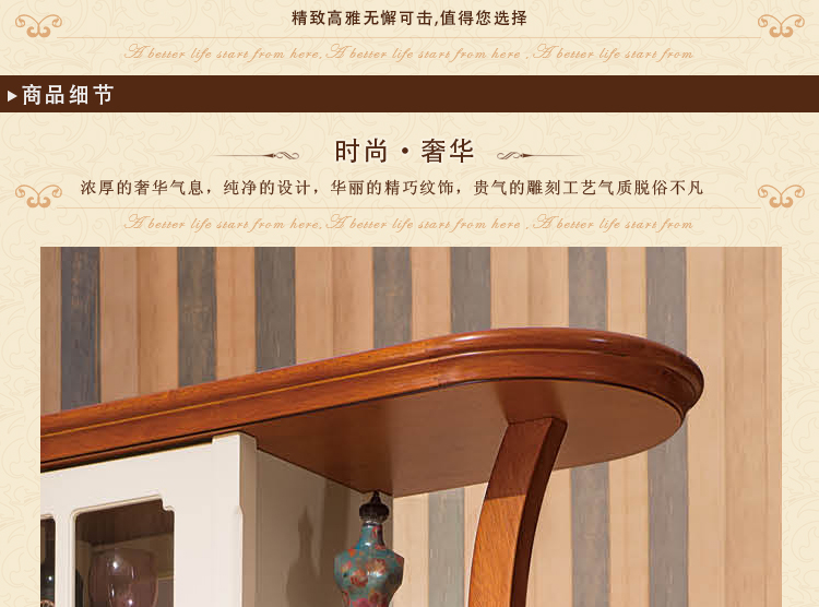 秉承灵感无限的美学创意思想,将艺术和传统文化融入家具设计,每一个细节都表现出家具的品味和自我的风格,折射出家具的文化和强烈个性。朴实简洁不华丽,没有繁多琐碎的花式设计,打造一个时尚完美的家。