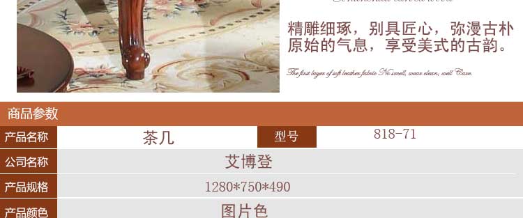 艾博登 美式茶几美式乡村茶几实木美式小户型家具咖啡茶桌茶几 818-71