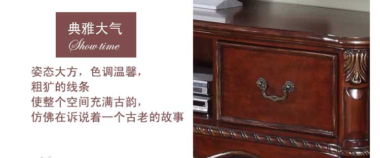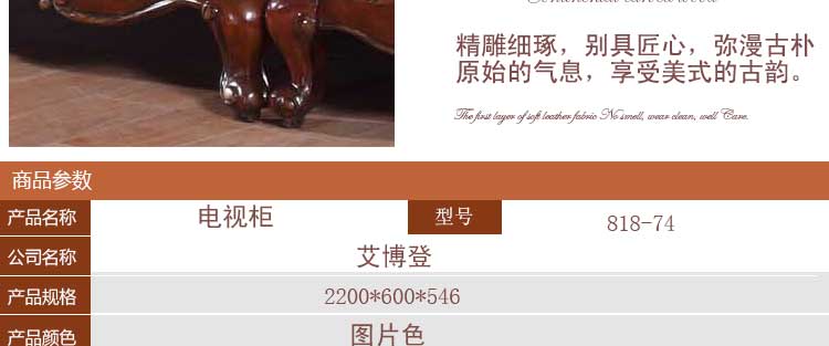 艾博登 美式乡村电视机柜 实木雕花地柜客厅家具矮柜 818-74