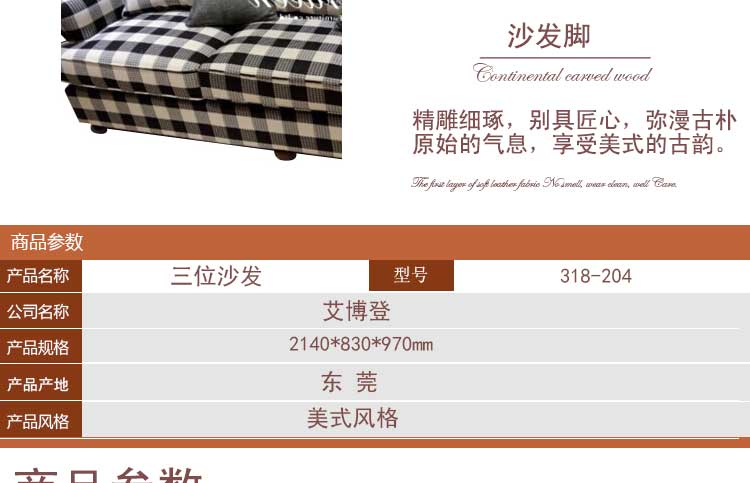 美式布艺沙发客厅三人位沙发厂家直销新款沙发318-204