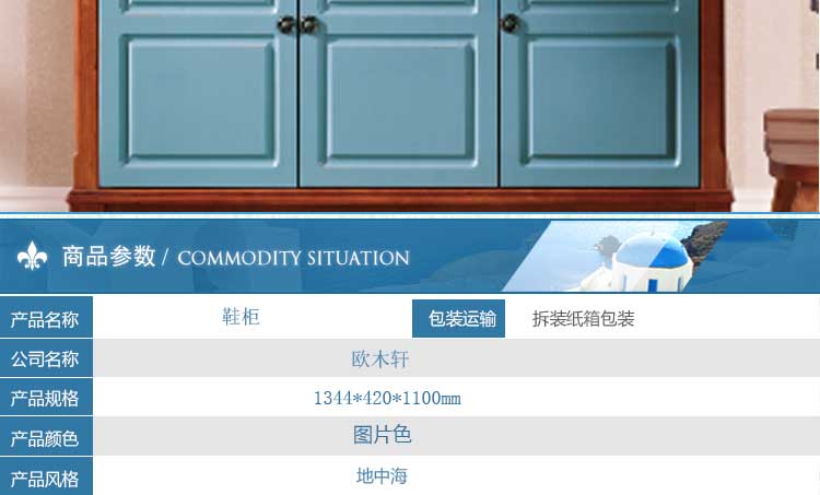 欧木轩简约美式玄关组合柜地中海三门经济型组装放鞋柜8M001