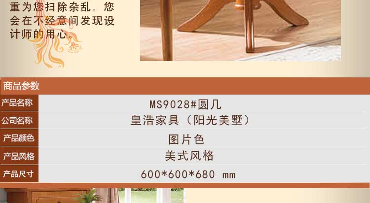 皇浩家具客厅家用圆几板式客厅茶几美式风格圆几MS9028#