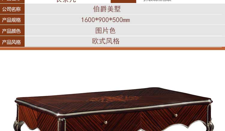 伯爵美墅 客厅茶几实木长茶几欧式长几简约茶几 S16-K206长茶几黑檀