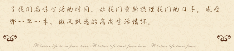 材质上的精挑细选,工艺上的尽善尽美,回归自然,崇尚原木韵味,外加现代、实用、精美的设计风格,反映出现代都市人进入后现代社会的另一种思考方向。