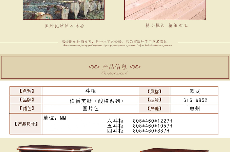 伯爵美墅新款欧式四斗柜五斗柜六斗柜高档实木收纳柜S16-W852