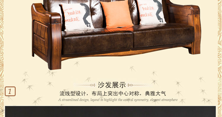 欧卡 实木皮质沙发1.2.3.组合沙发 小户型沙发 高端沙发 G1501
