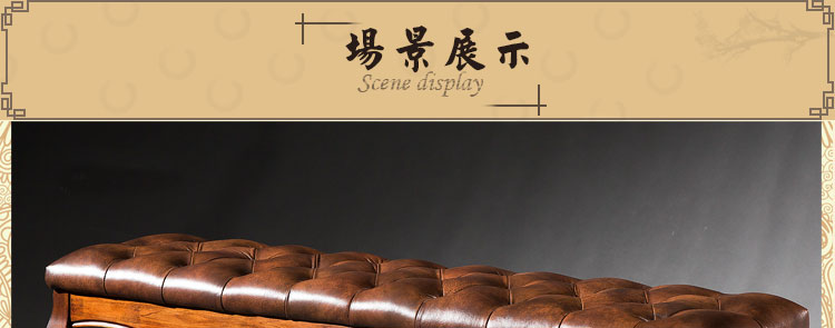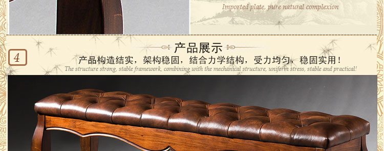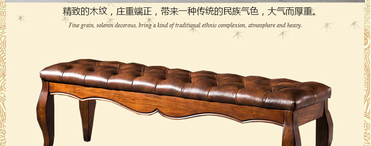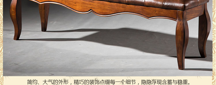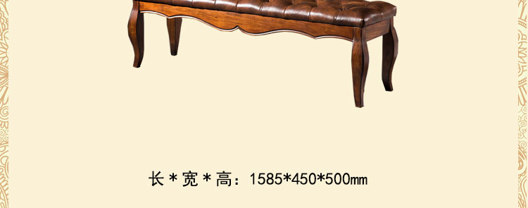 欧卡 实木雕刻床前登换鞋凳美式卧室床尾凳真皮休闲等躺椅美人榻沙发凳V1501