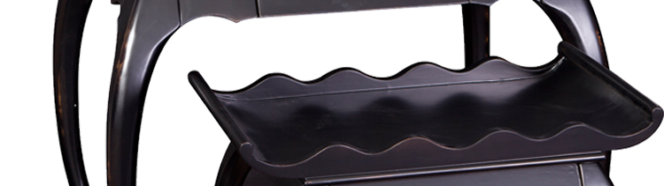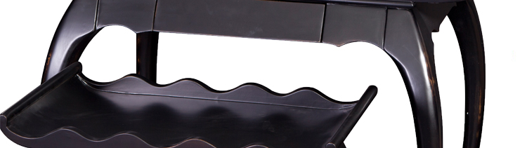 造型简练、以线为主,严格的比例关系是家具造型的基础。结构严谨、作工精细,明代中式风格家具的卯榫结构,极富有科学性。木材坚硬、纹理优美,自然优美,呈现出羽毛兽面等膝陇形象,令人有不尽的遐想。