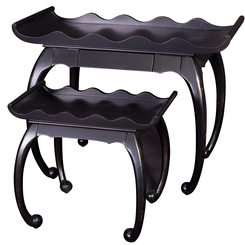 器道家具实木黑色茶几客厅储物放置茶几套二黑色茶几NT-5039