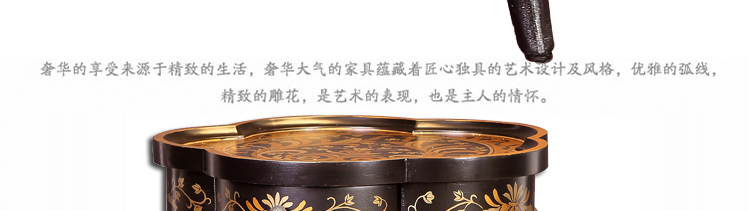 器道家具客厅中式风格简约茶几黑色画梅花形茶几储物茶几TT-123-01YF
