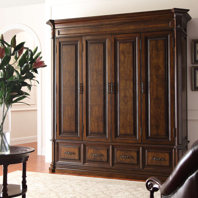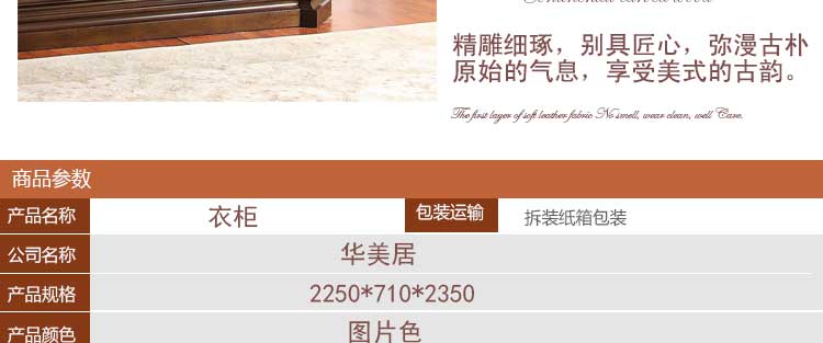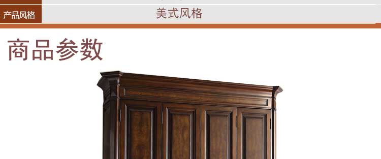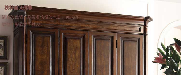 华美居 简约美式乡村实木4门衣柜 美式田园整体大衣橱卧室家具R168N-181