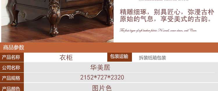 华美居 美式深色家具 美式衣柜衣橱 带抽衣柜 美式乡村衣柜R170N-181A/B/182A/B