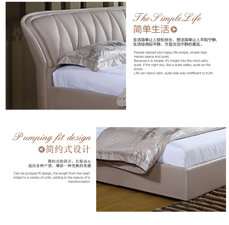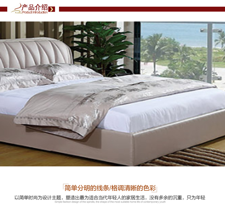 圣德利奥现代简约软包皮艺 1.8米 1.5米大床皮床婚床小户型舒适大床876#