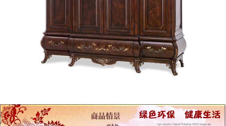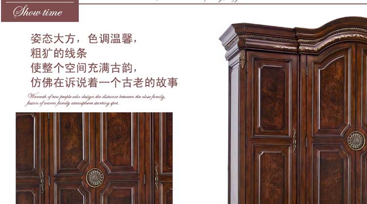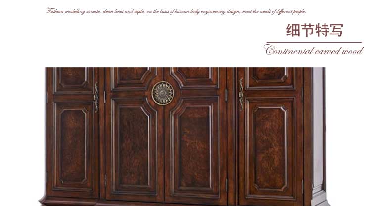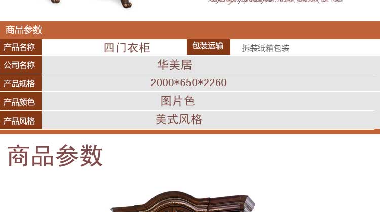 华美居 美式衣柜实木门整体大衣柜衣橱四门卧室家具衣柜 R191N-18L