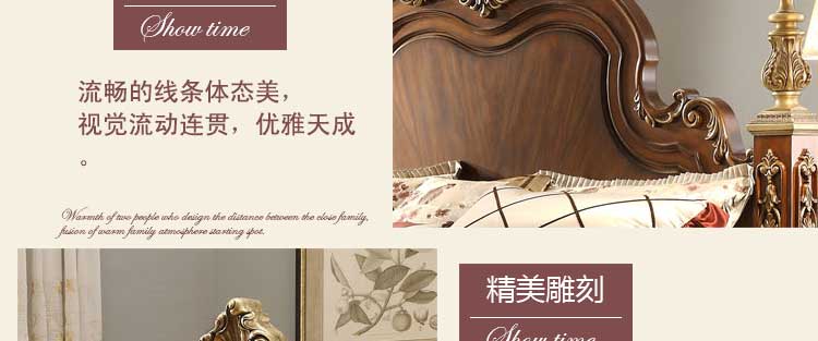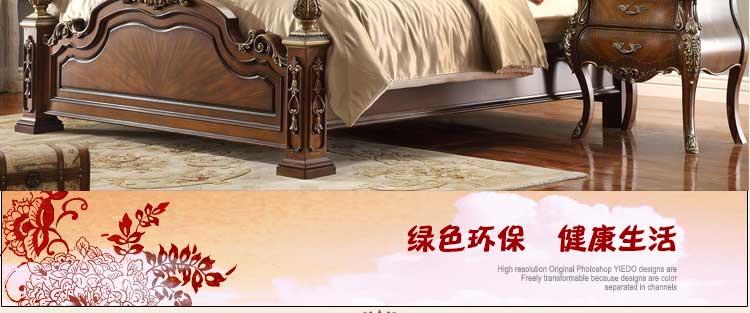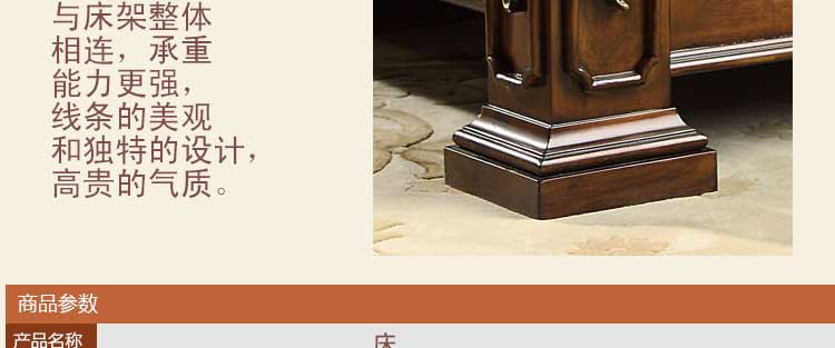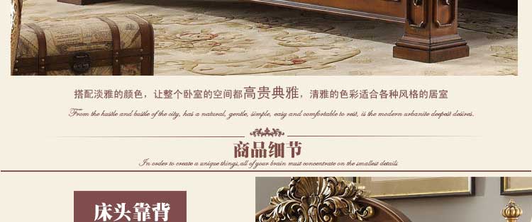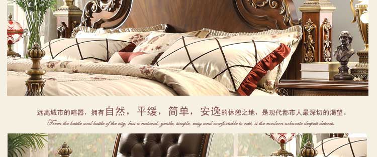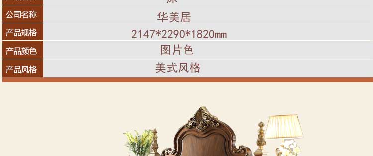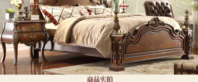 华美居 实木床美式床真皮床美式家具1.8米卧室床双人 床R192N-90/91/97