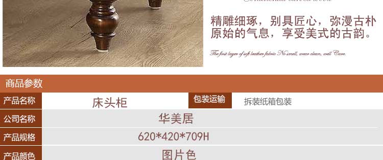 华美居 美式家具 简美实木床头柜床边柜 美式卧室储物收纳柜B310N-43