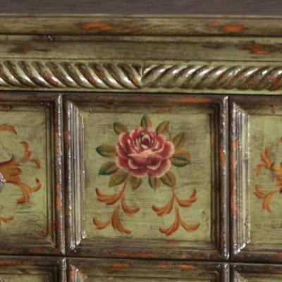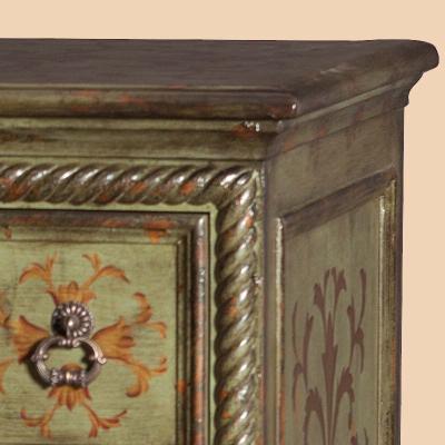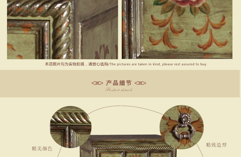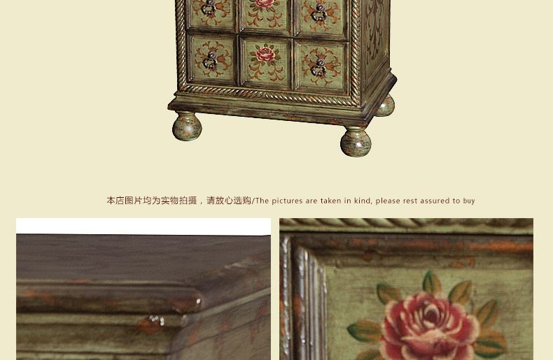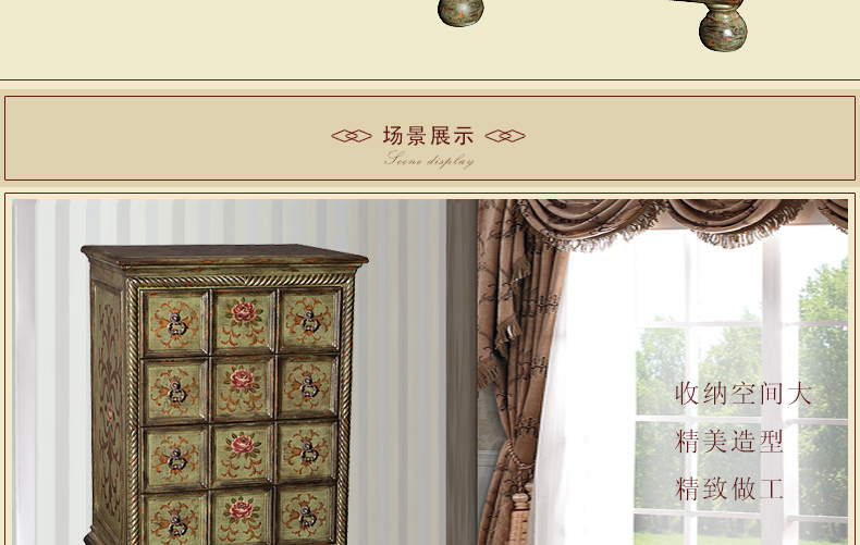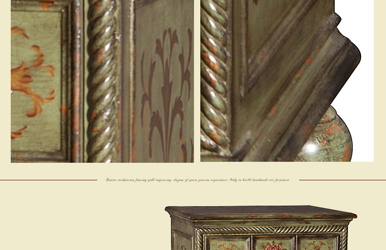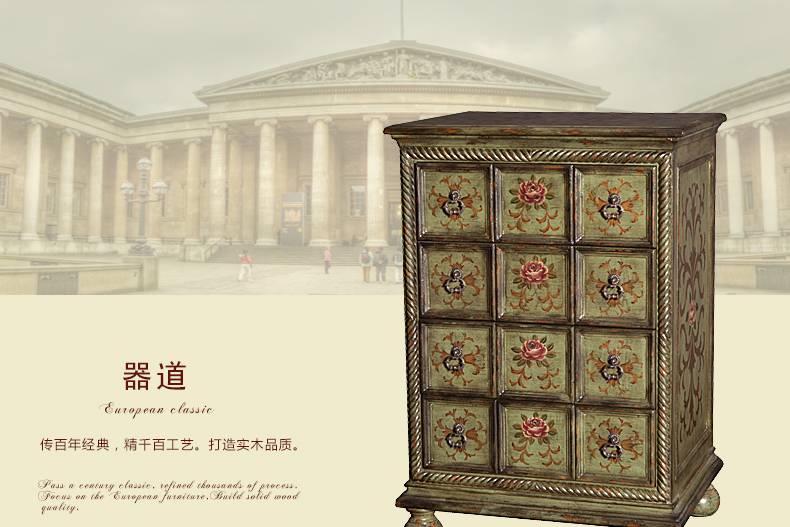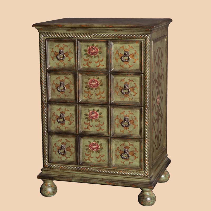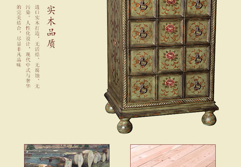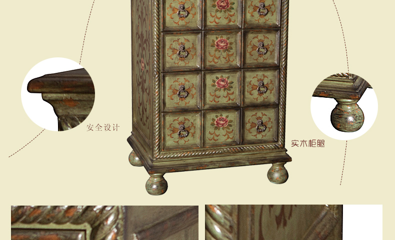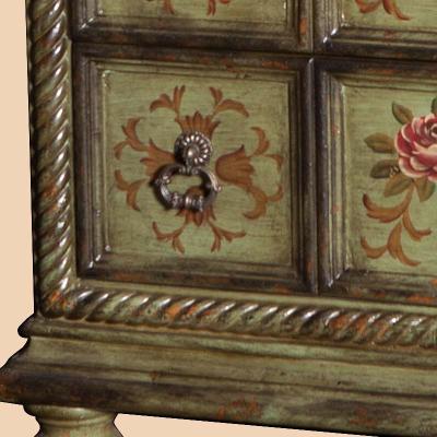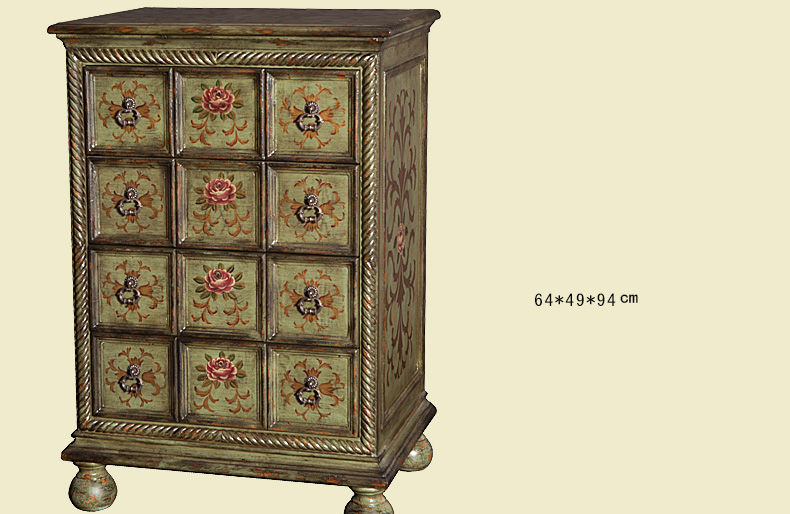 器道家具新款实木高档中式绿色仿旧画花四斗柜C-6031K-01