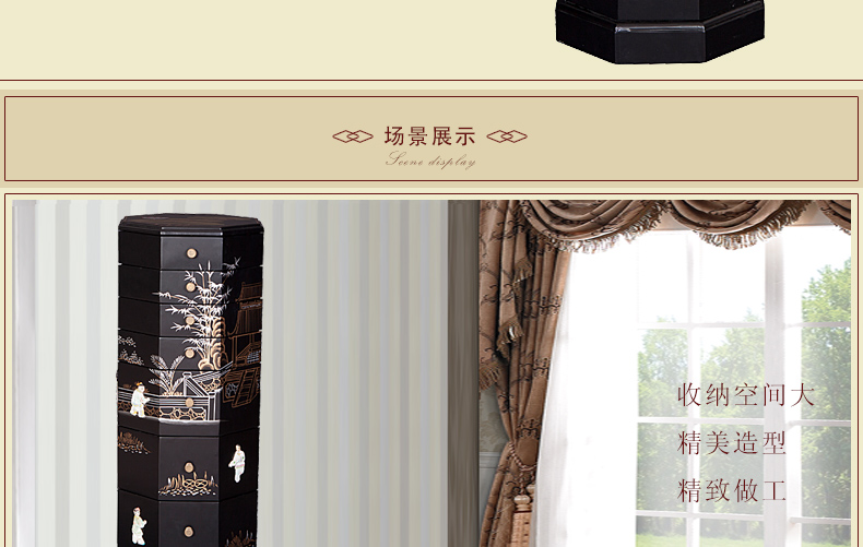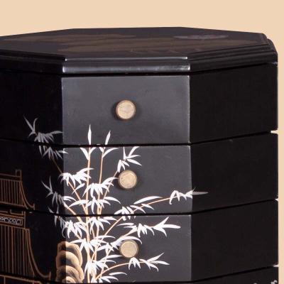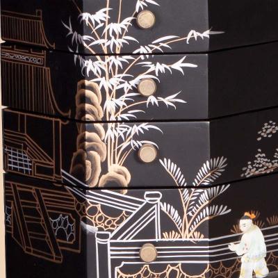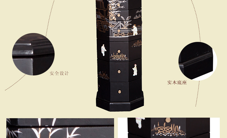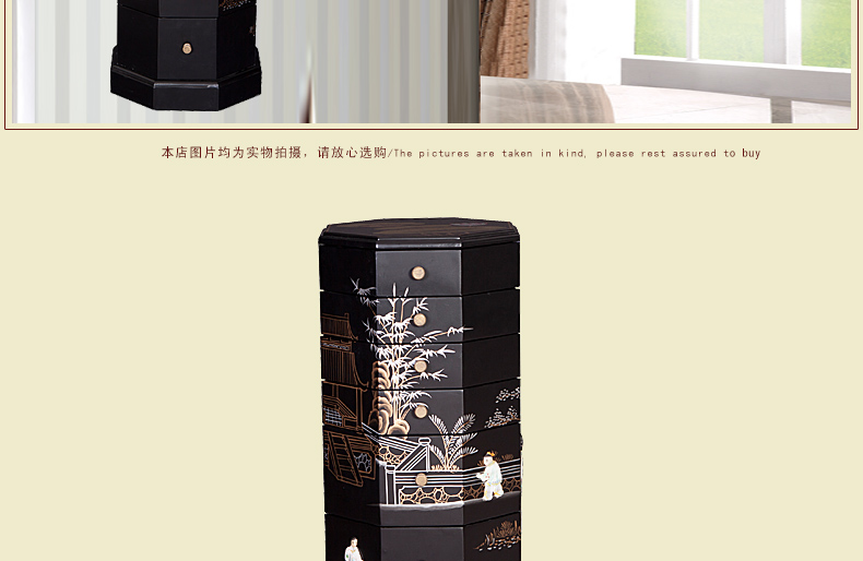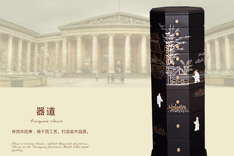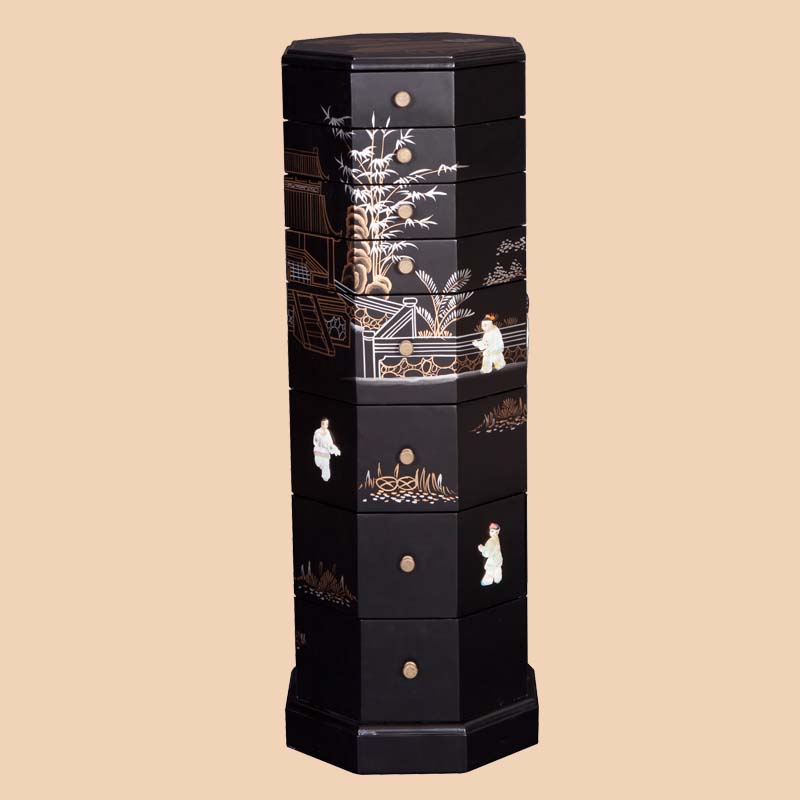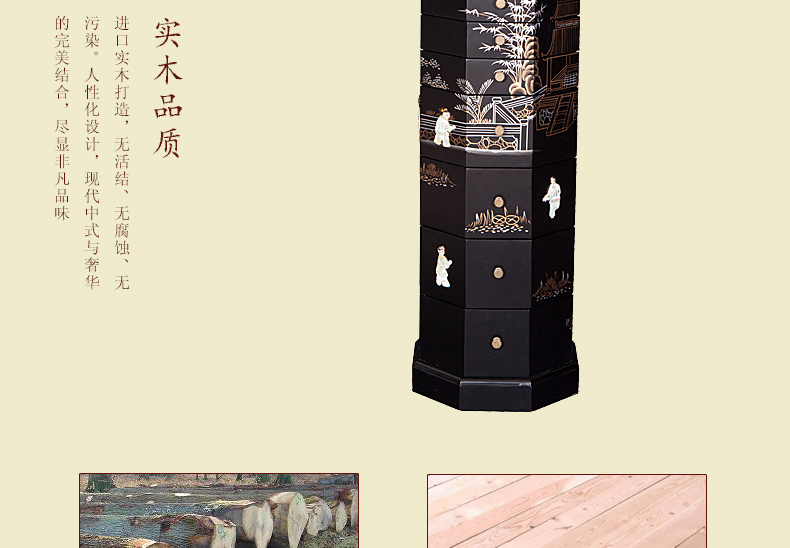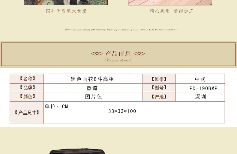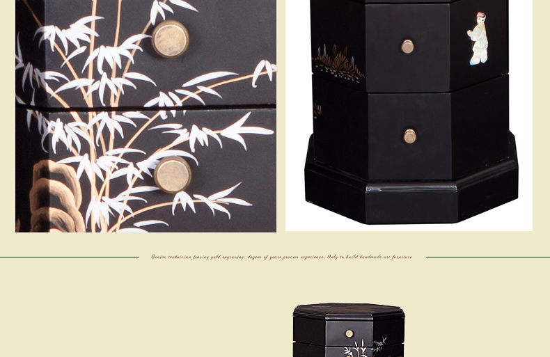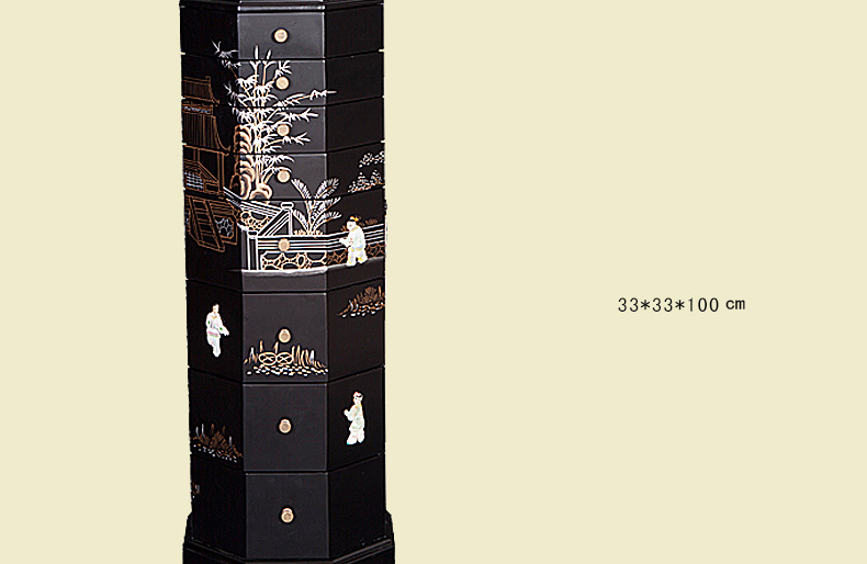 器道家具新款中式高档卧室斗柜实木黑色画花8斗高柜PD-190BMP