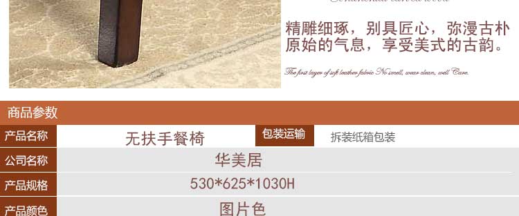 华美居 美式实木餐椅 做旧椅子复古餐厅靠背美式餐椅美式 B313N-150