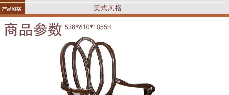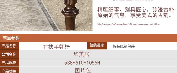华美居 美式复古实木餐椅美式做旧靠背扶手椅漫咖啡酒店餐厅休闲椅子B310N-151