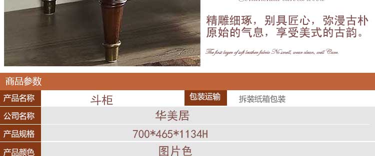 华美居 全实木斗柜美式斗柜欧式斗柜五斗柜 卧室客厅储物柜家具B316N-14