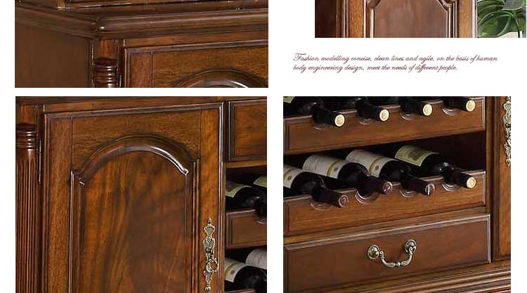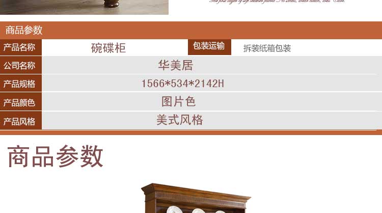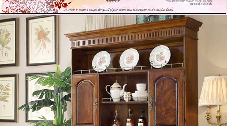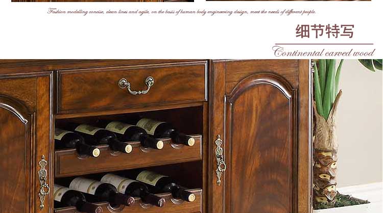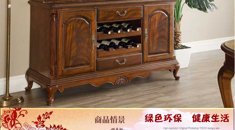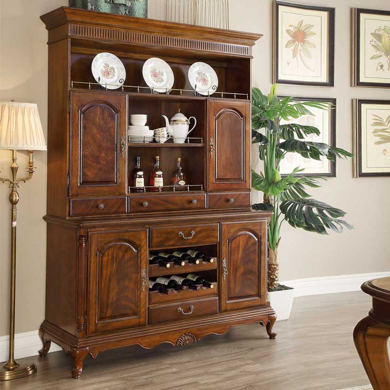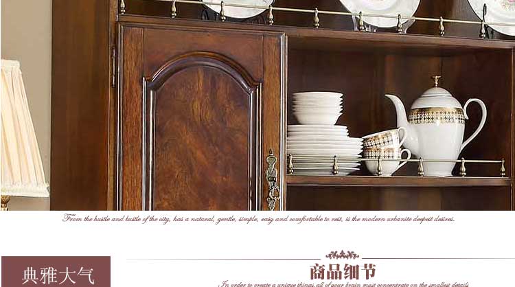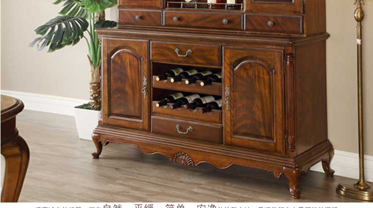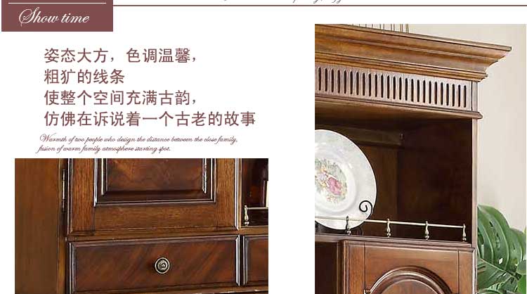 华美居 纯实木碗碟柜餐边柜 美式餐边柜橱 玻璃储物柜 B306N-470/472