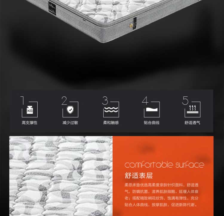 睡蒙 进口针织布减压绵护椎绵3D纤维丝3E环保棕袋装碳钢弹簧 SV-2205#