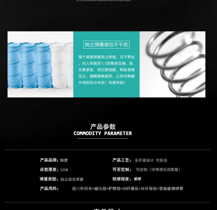 床垫收到了,比我想象的要好,做工精细,软硬合适