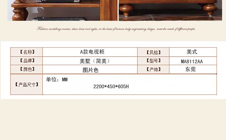 美墅家具美式乡村实木电视柜茶几组合小户型客厅地柜复古家具MA8112AA