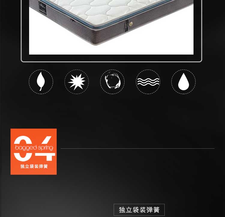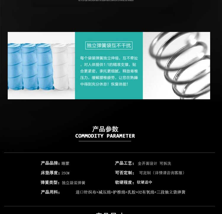 睡蒙 进口针织布减压绵护椎绵乳胶O2有氧绵三段独立袋弹簧床垫SV-2210#