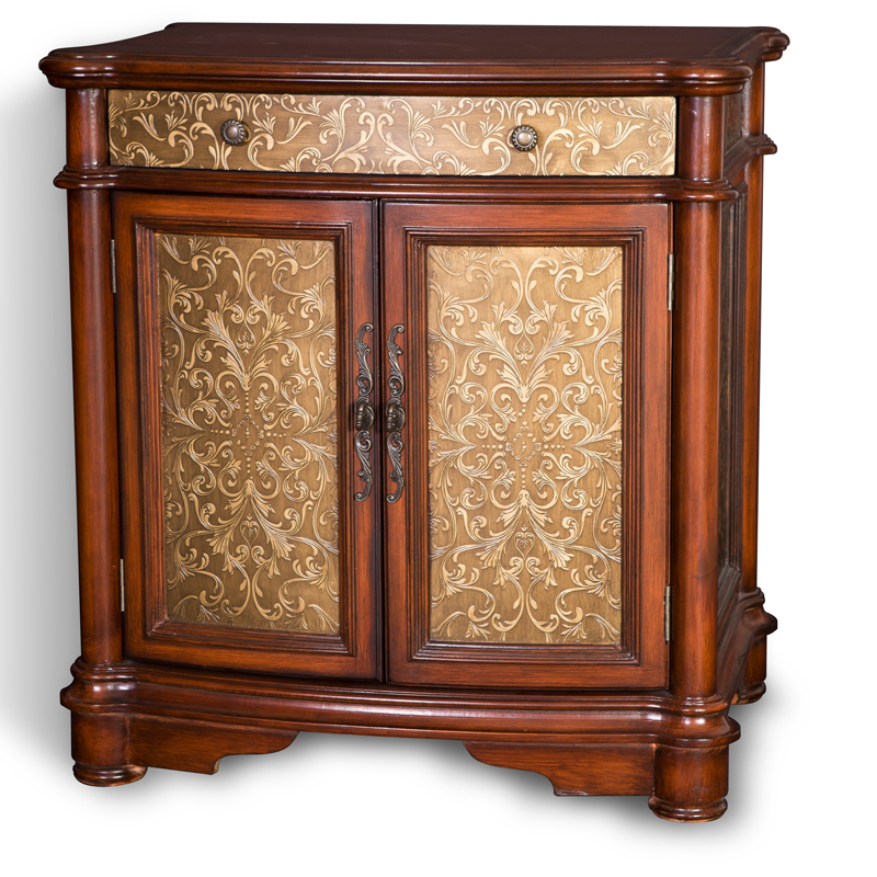 器道家具新款中式高档卧室斗柜实木C-6056K一斗双门铜皮花纸柜