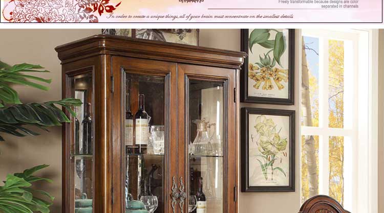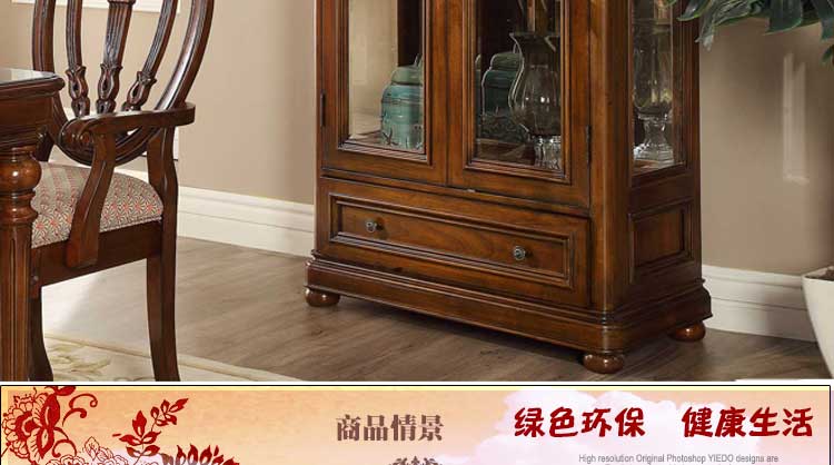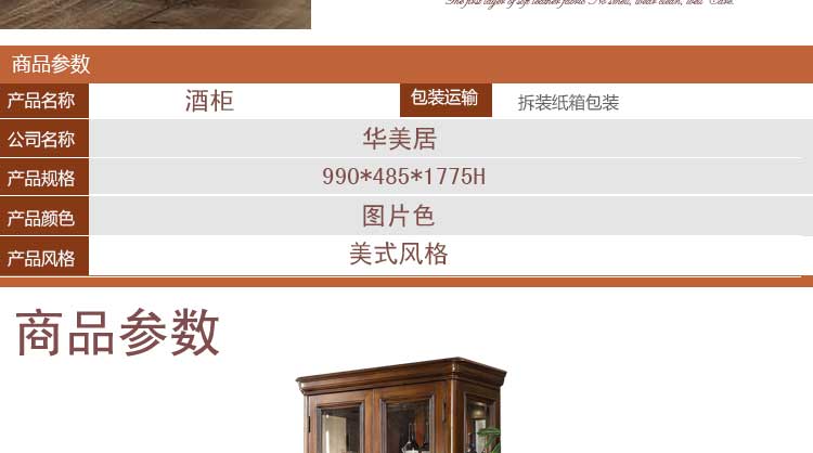 华美居 美式实木双门酒柜储物柜展示柜隔断柜高档客厅装饰柜B308N-38