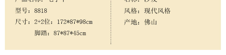 外围尺寸:2+2位:172*87*98cm 脚踏:87*87*45cm