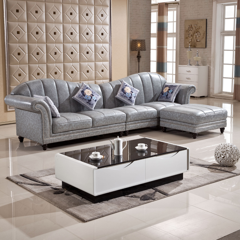 七子牛现代风格客厅真皮L型沙发奢华舒适高档休闲沙发8818