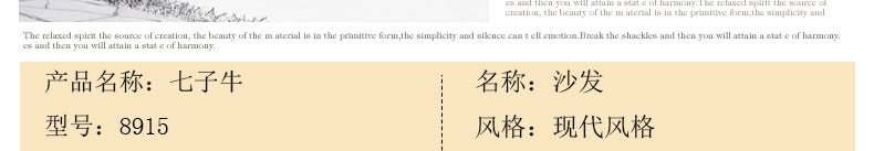 现代沙发线条流畅简洁,厚实饱满,温暖色调的自然美,极具艺术美感,强烈的贵族风情。让人感觉舒适,享受奢华。简约坚固 外观细腻淡雅,自然简洁,形尚简约。