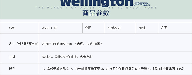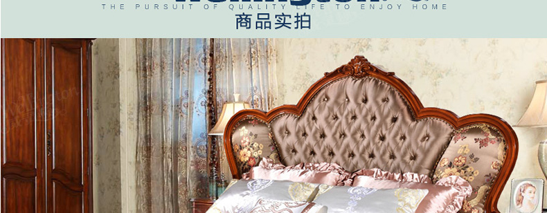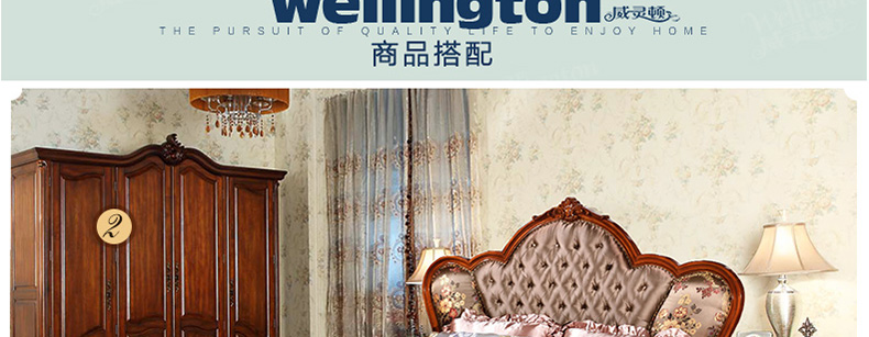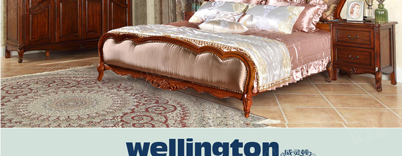 威灵顿 欧式真丝床美式实木床1.8米双人床新古典公主床布艺大床A603-1