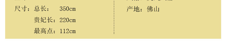 外围尺寸:总长:350cm; 贵妃长:220cm; 最高点:112cm。