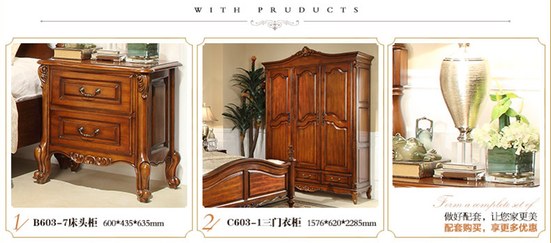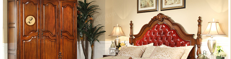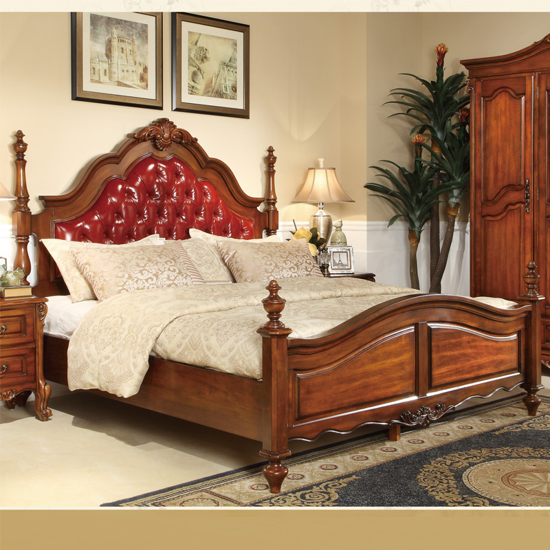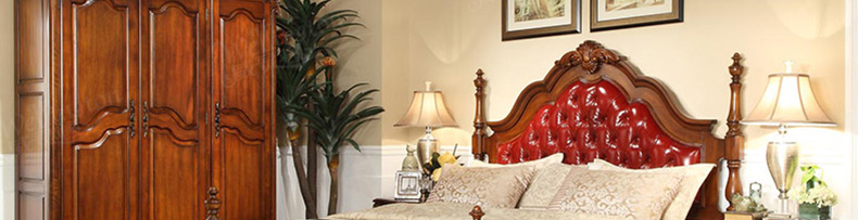 威灵顿 欧式床双人床1.8米美式全实木床真皮公主床大床家具A603-2