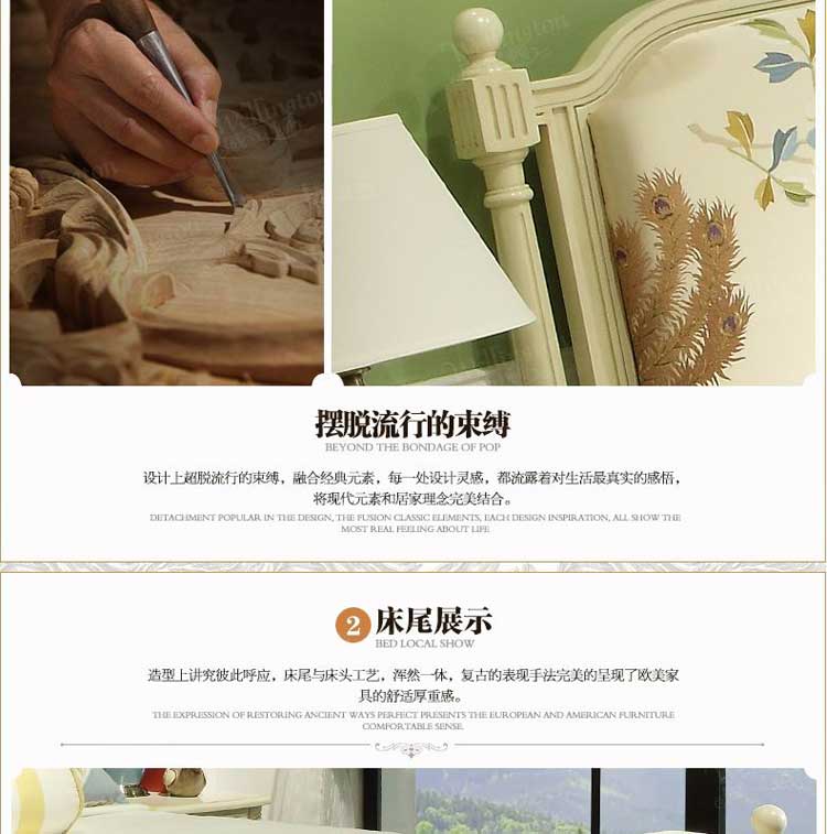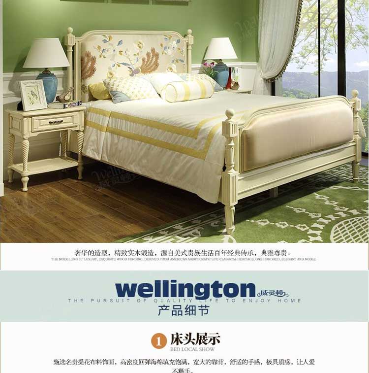 威灵顿美式乡村床白色全实木床1.5米双人床韩式田园欧式床A602-19