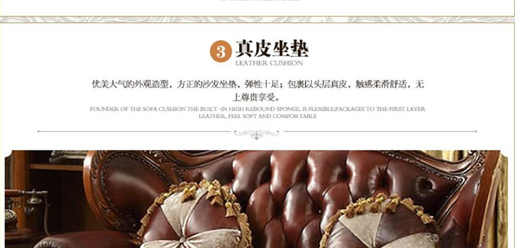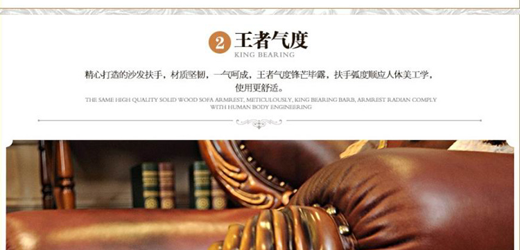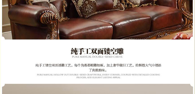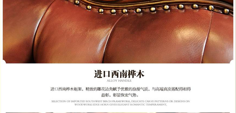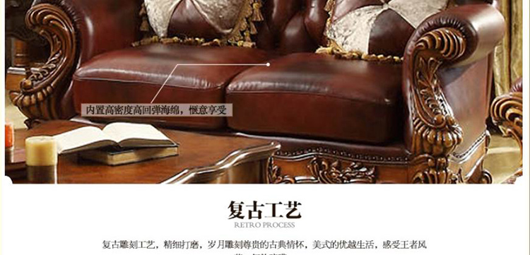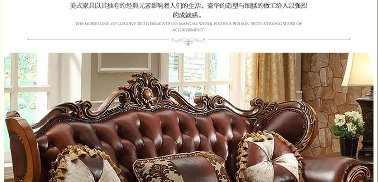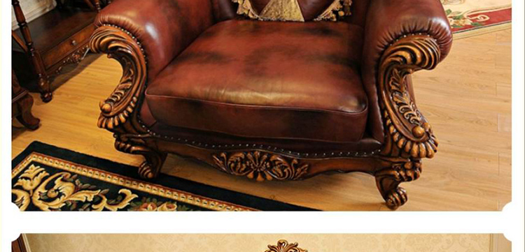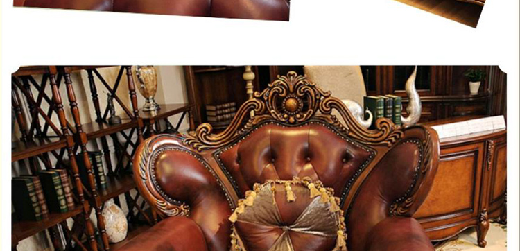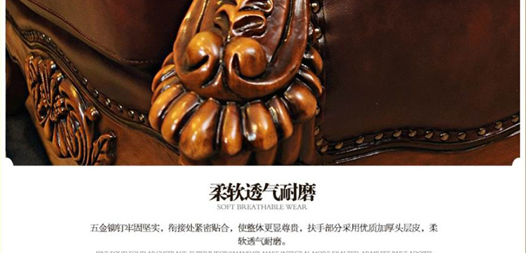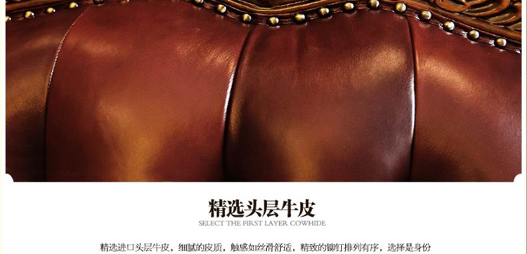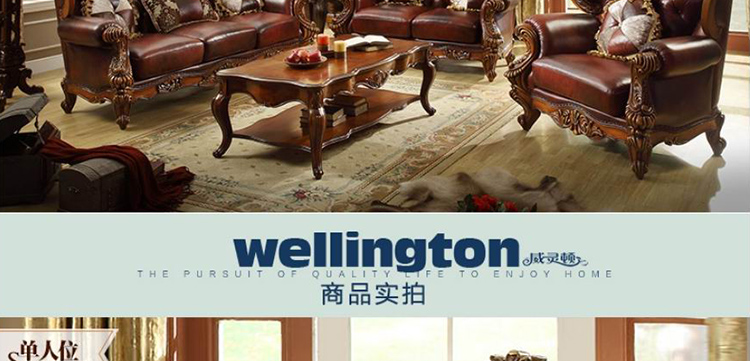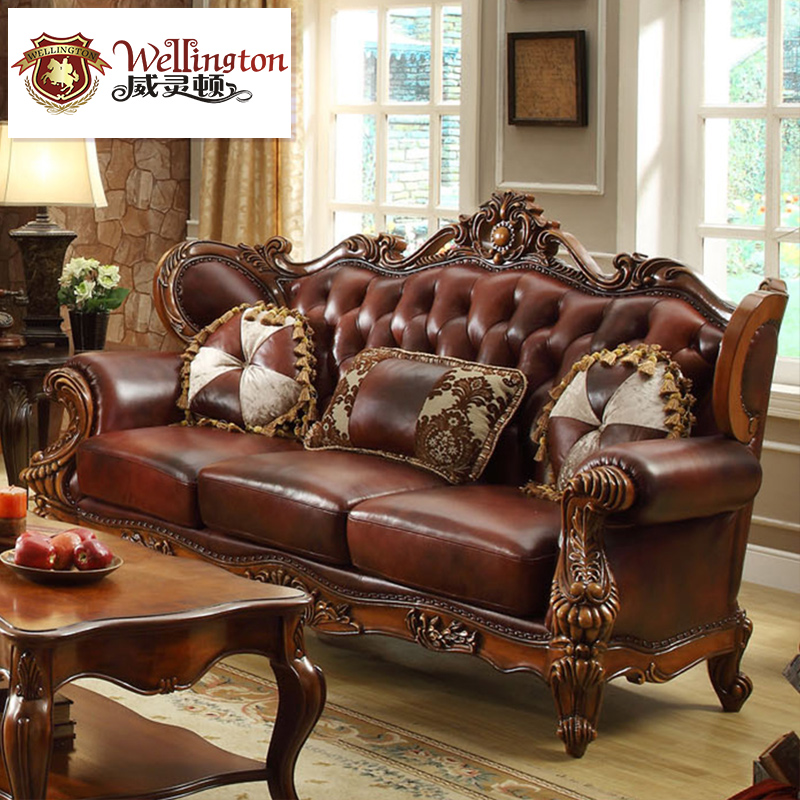 威灵顿 美式头层真皮沙发组合别墅大户型奢华欧式实木沙发X601-12