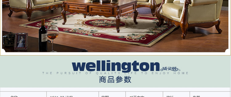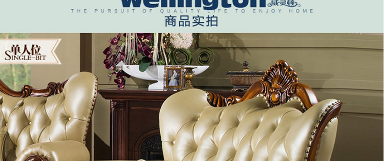 威灵顿 欧式真皮沙发组合大户型高档美式乡村别墅实木沙发X601-23