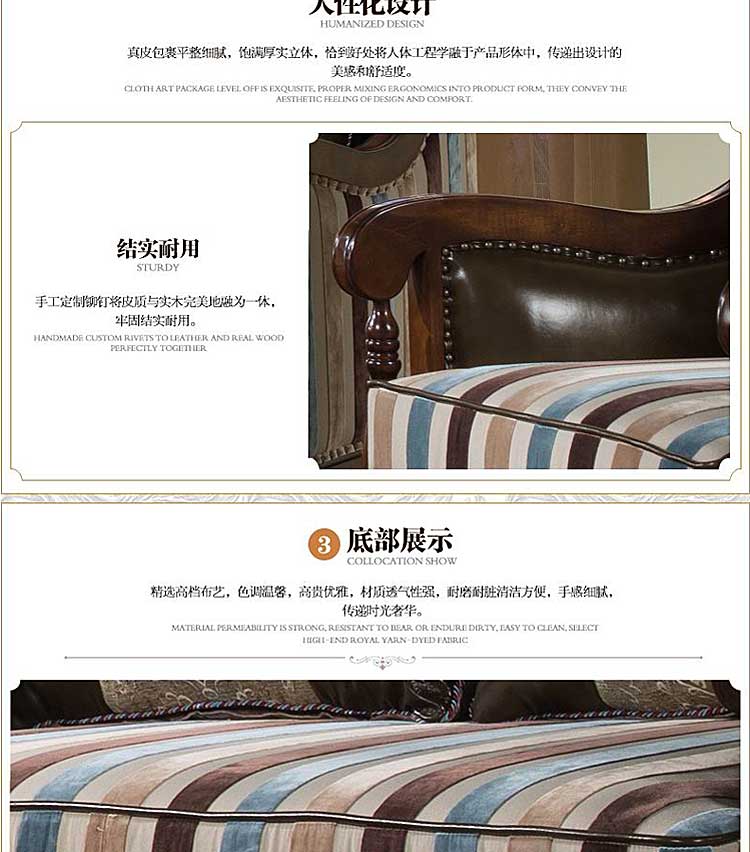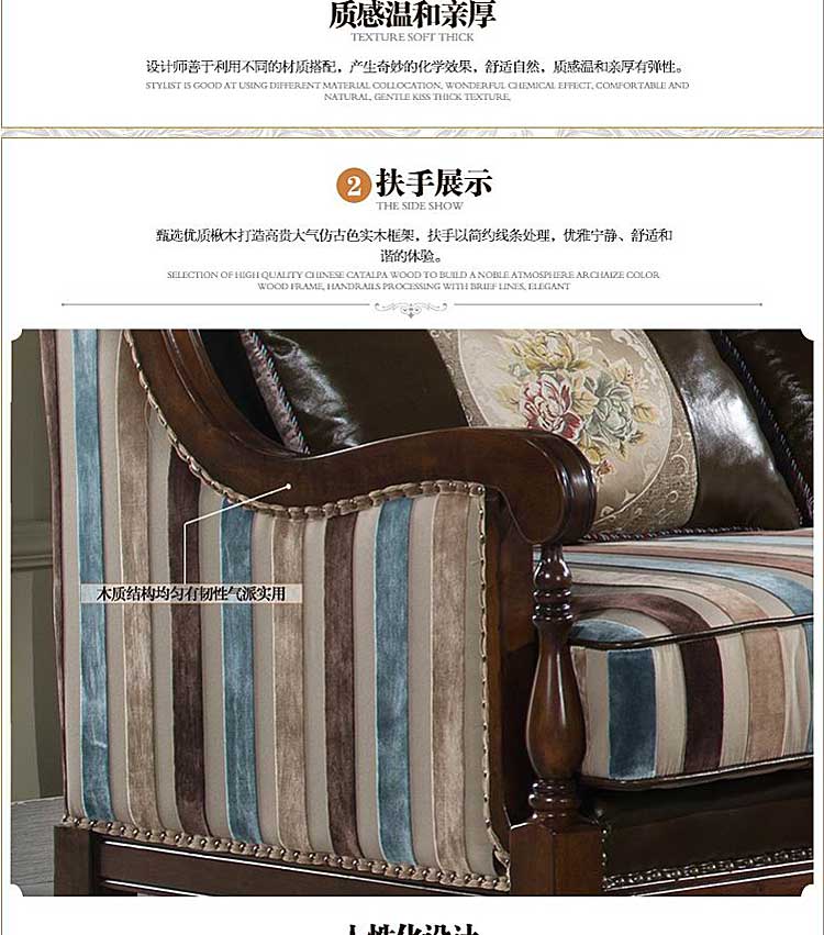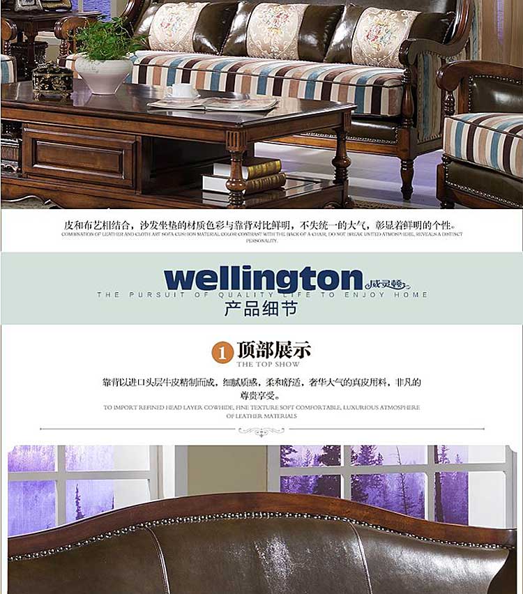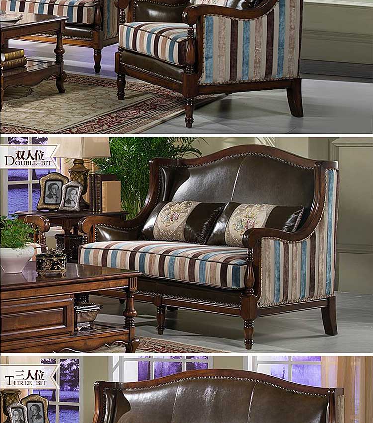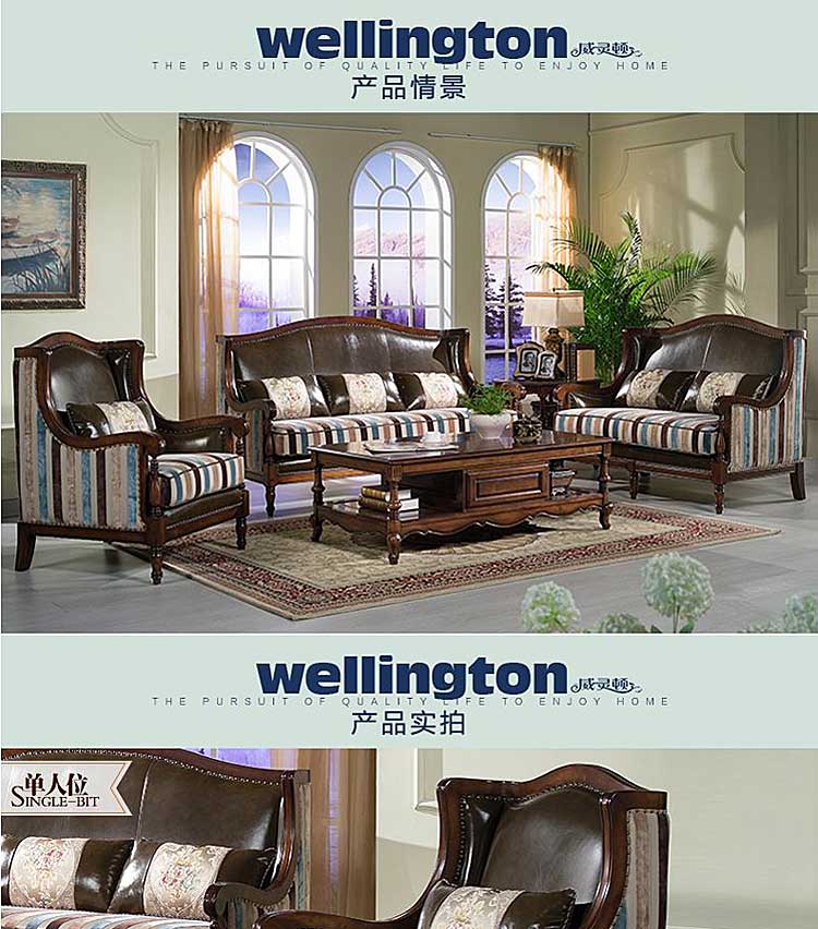 威灵顿高档美式实木真皮沙发简美客厅田园欧式皮布沙发组合X602-1