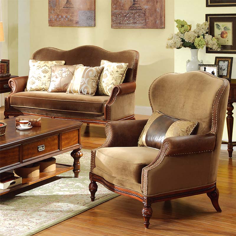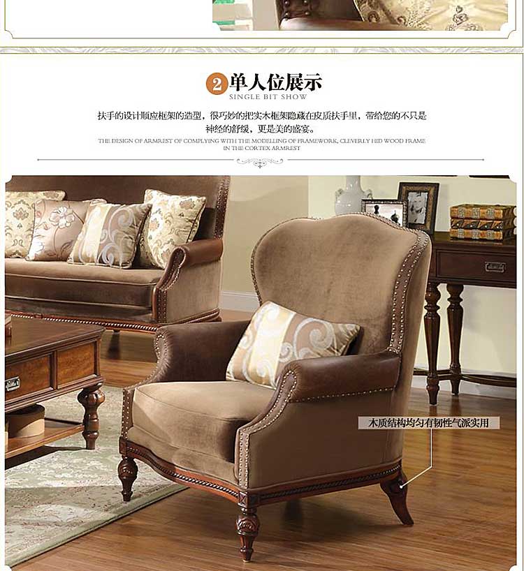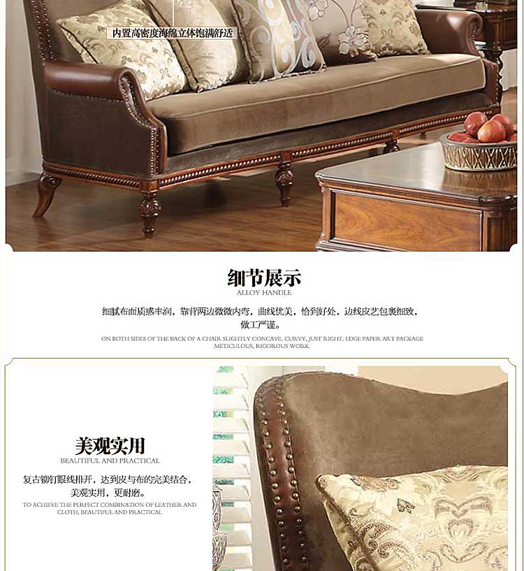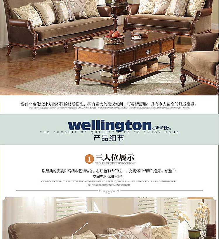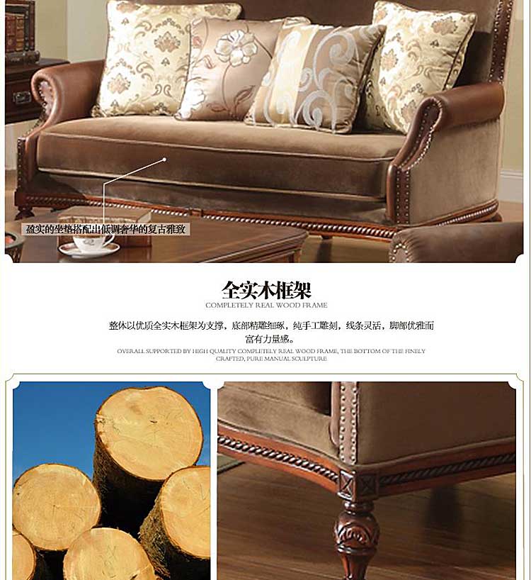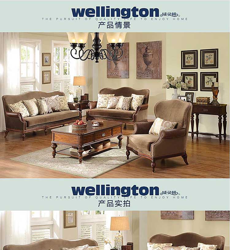 威灵顿美式乡村布艺实木沙发组合复古美式客厅简美皮布沙发X602-2