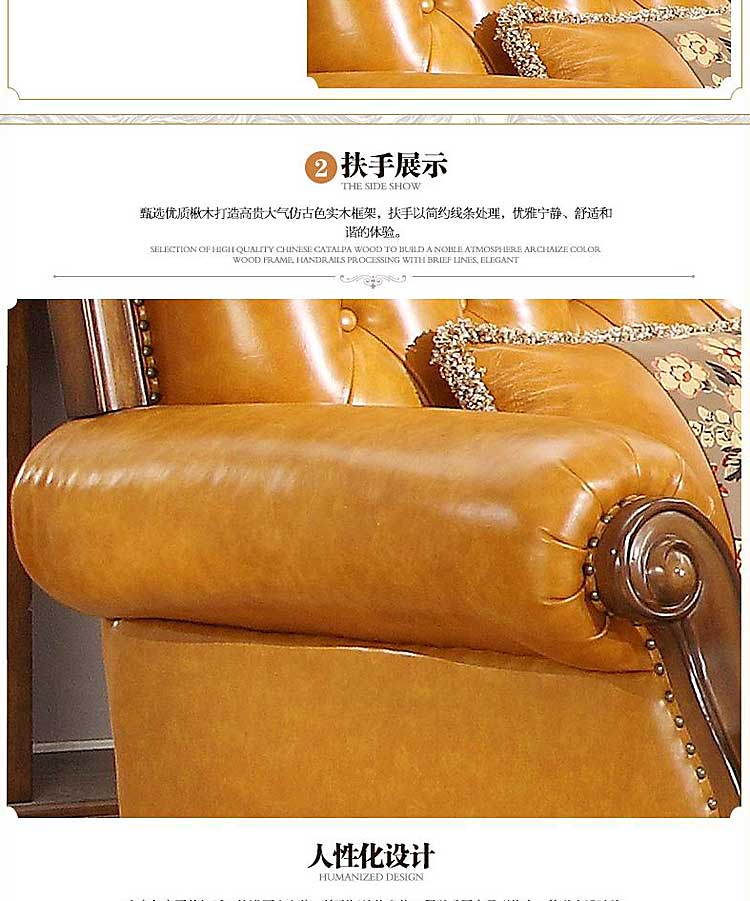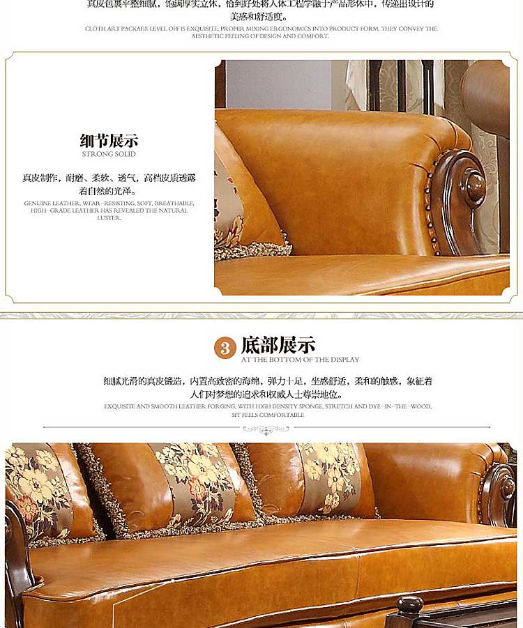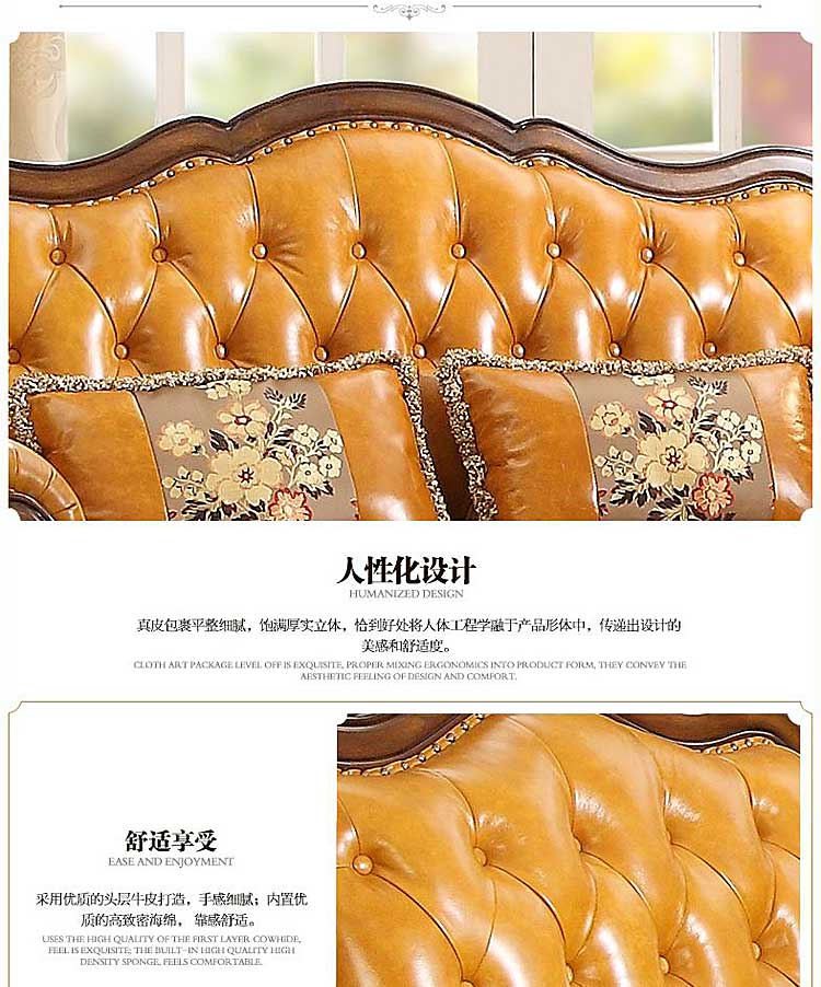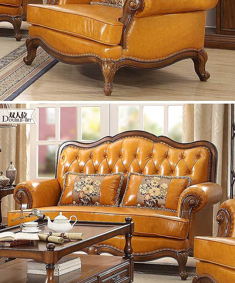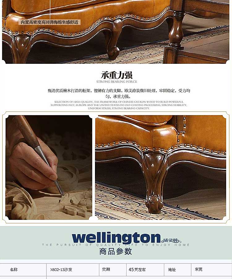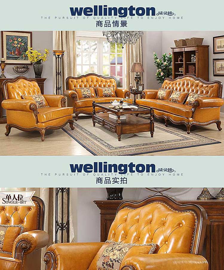 威灵顿高档美式简美真皮沙发组合客厅美式全实木沙发X602-13